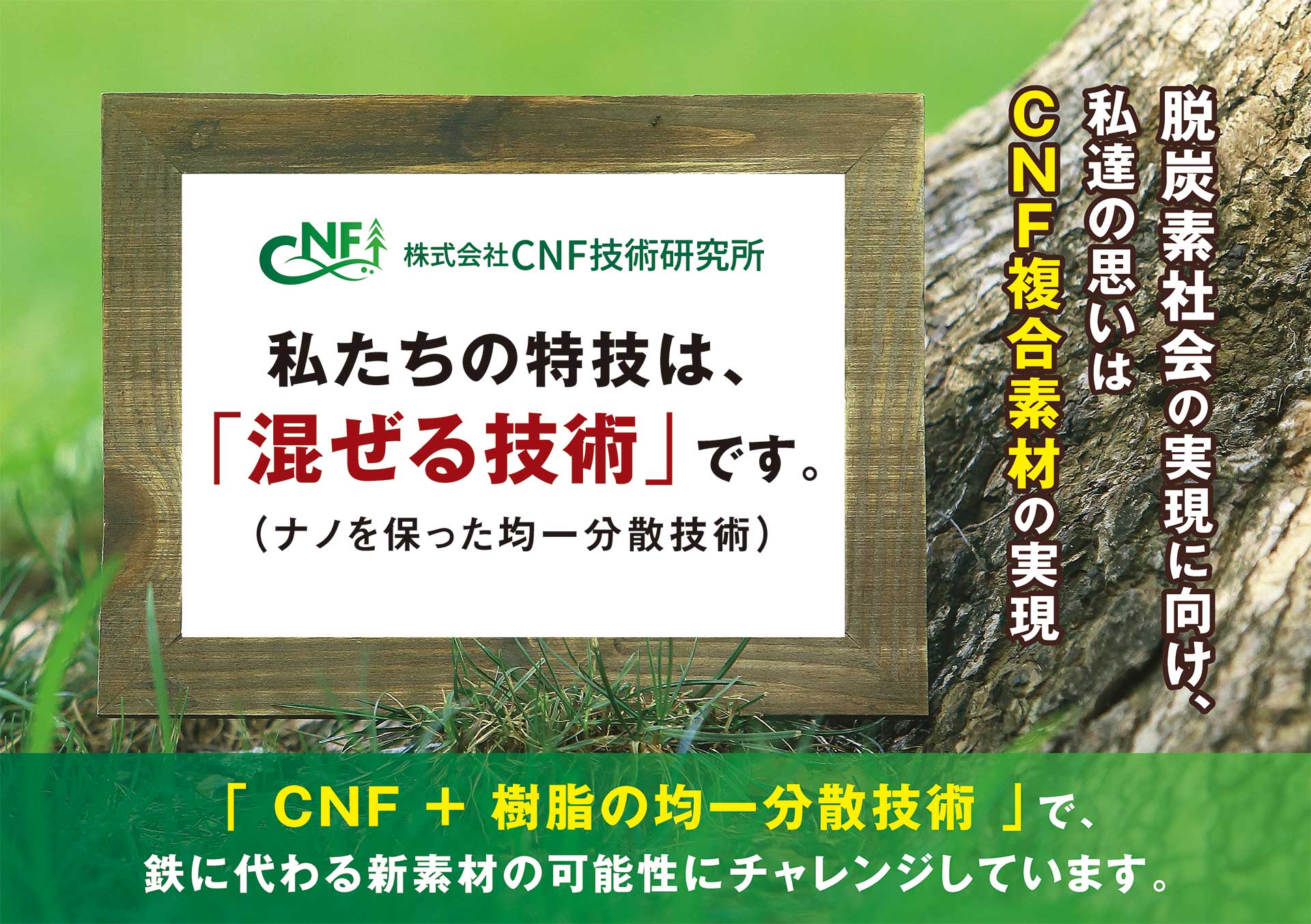 日本が誇る植物のセルロースからつくられた最先端素材である「セルロースナノファイバー(CNF)」を、ナノサイズ(10億分の1メートルの単位)の状態で各種樹脂に均一分散させる技術は確立されていません。
